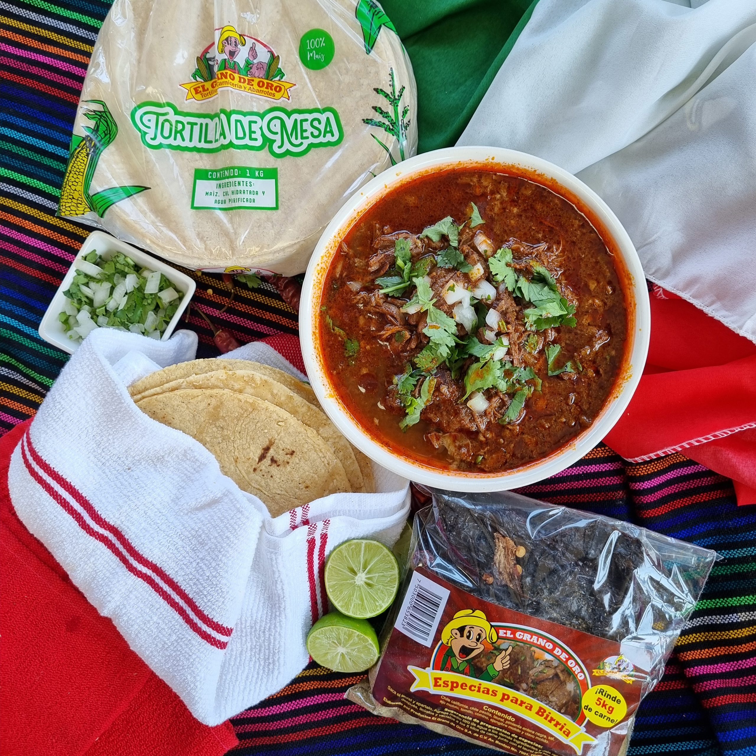 4. Sirve con cebolla, cilantro y chile seco. Acompaña con tortillas de El Grano de Oro